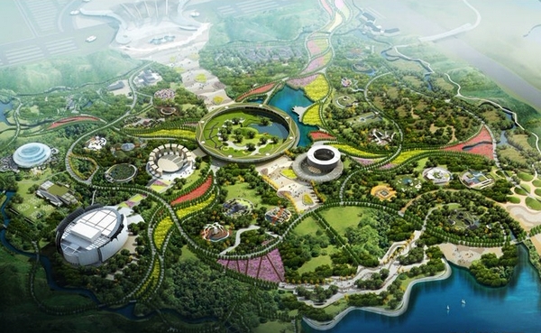 園區基礎設施工程已經全部完成,景觀樹木種植及200萬平方米園區草坪鋪裝也已結束。仍在繼續的工程主要是展館的內部陳設。明年春天還會有大量花卉引入園區。