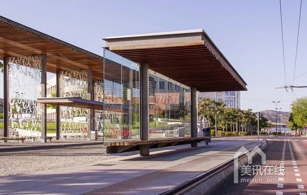 在中軸線的尾端,進入中央廣場之前,學校里面有會議廳和車站。從中軸線的另一端也可以看到這個由巨大的鋼鐵和玻璃組成的木天篷,給其增加了一種深度和復雜感。