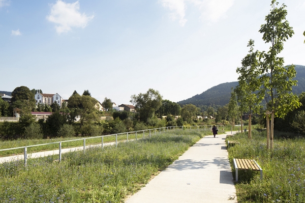 “the banks of the meurthe”項目是由巴黎事務所atelier cite architecture設計的,他們根據可持續的設計概念,為今后該地區的擴建提供可能性。設計師悉心的管理河岸上的植物,促進河岸的自然穩定,限制腐蝕并促進當地植物的多樣性。