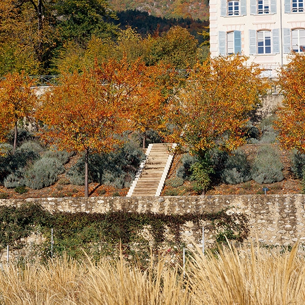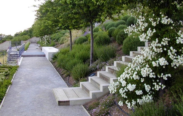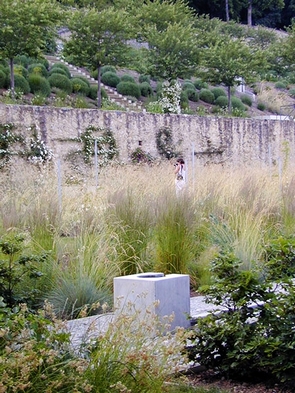 Charance花園位于法國Gap鎮的一塊梯田上面,邊坡上設有擋土墻,水元素貫穿整個設計。Gap鎮想要在這塊土地上恢復一個梯田狀的花園;部分區域設置成高山植物溫室,里面種上玫瑰。植被由種植的梯田和玫瑰組成。此花園在土地重建方面提供一個“contemporary reading”的概念。